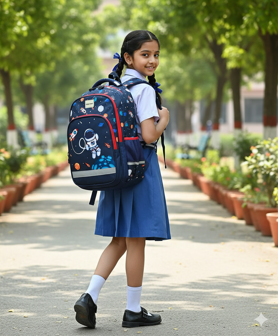 This 19-liter backpack features fast-moving, vibrant prints available in multiple themes including sports, cars, quotes, nature, and more. Its spacious main compartment offers everyday practicality while the front panel adds a stylish, eye-catching look. Designed for comfort and daily use, it’s perfect for school.