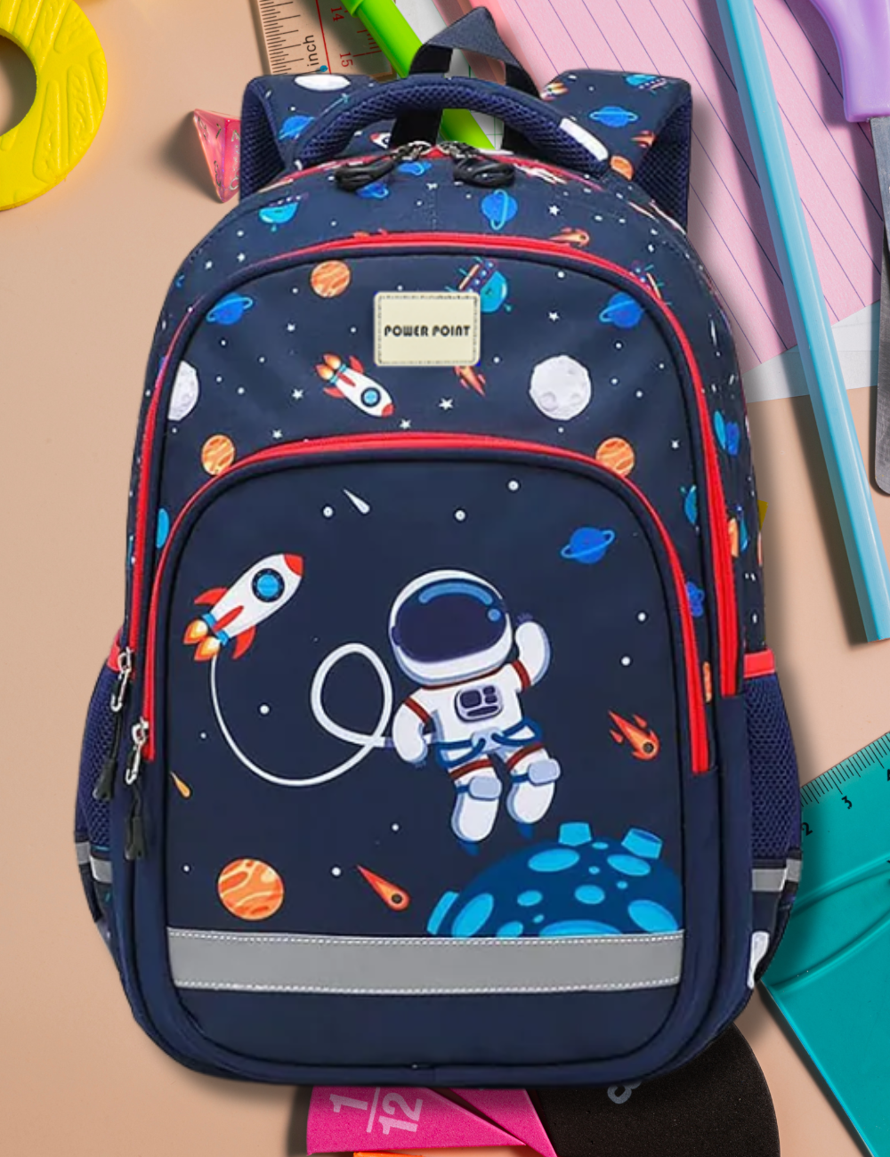 This backpack features eye-catching, fast-moving prints that stand out with a bold and playful cosmic theme. Its 24-liter capacity offers plenty of space for books, gadgets, and daily essentials, making it ideal for school or casual use. Durable materials and a practical front pocket add both style and functionality for everyday carry.